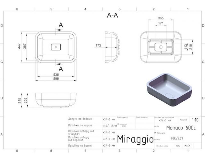 | Ширина, мм | 595 |