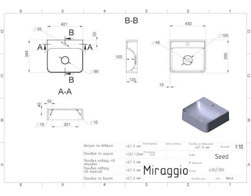 | Комплектація | Умивальник, декоративна накладка на зливне отвір, документація |