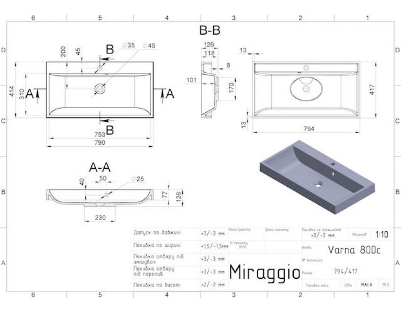 | Ширина, мм | 794 |