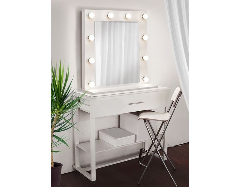Дзеркало з лампочками "Голівуд смол" - це потрібний об'єкт обстановки для сучасної дівчини. При розробці дизайну передбачалися всі запити професійних майстрів макіяжу, від чого на дзеркалі встановлені конкретно 10 лампочок на певній відстані з конкретною потужністю в 4w кожна. Таким чином досягли однорідного пучка освітлення, що не залишить без уваги жодної частки вашого обличчя.