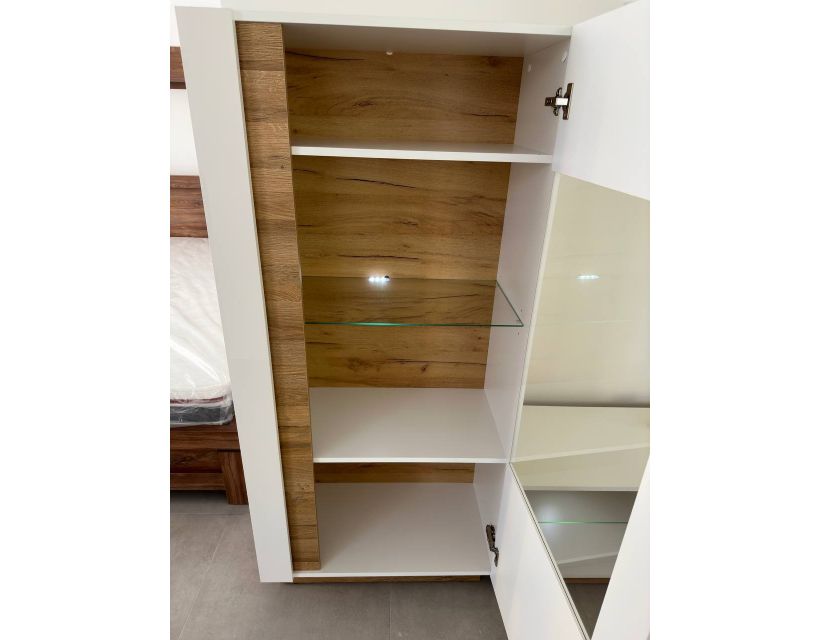 Вітрина Perfect Home Арко - це стильний і функціональний елемент для вашого інтер'єру. Її витончений білий глянець у поєднанні з натуральним дубом грандсон створює сучасний вигляд, який гармонійно впишеться у будь-яке приміщення. Цей меблевий виріб стане не тільки прикрасою вашого будинку, але й надійним місцем для зберігання улюблених речей.