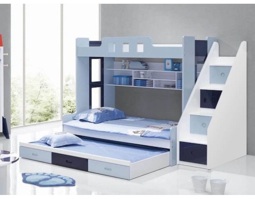 Размеры: Высота 1800 мм Длина 2300 мм Глубина 1200 мм Верхнее спальное место 800*1900 мм Нижнее спальное место 1200*1900 мм Выдвижное спальное место 800*1800 мм Цвет и размеры кровати можно заказать индивидуально! Благодаря огромному выбору цветового решения, вы подберете именно ту модель, которая понравится вашему ребенку. Такая кровать поразит вас своей компактностью, вместительностью и практичностью. Цвет и размер можно подобрать индивидуально по желанию клиента. Данный товар изготавливается под заказ. Срок изготовления зависит от загруженности завода. Цвета на выбор в ассортименте. Возможно изготовление в комбинации из нескольких цветов. Детская выдвижная кровать чердак для троих детей ВКТ 4   Цвет и размер можно подобрать индивидуально по желанию клиента. Дополнительно к базовой модели мы можем установить для Вашего удобства: ✔Дополнительный ортопедический матрас.