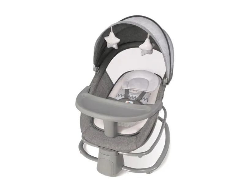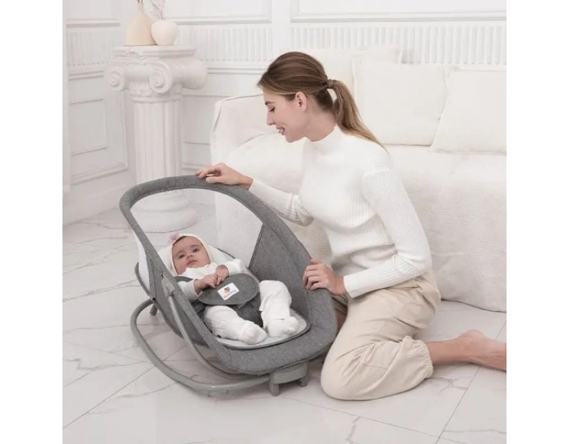 Убаюкивающий центр 4 в 1 Mastela 8112 позволит новорожденному малышу проводить много времени с пользой для своего развития, давая родителям возможность отдыхать или заниматься домашними делами. Данная модель имеет 5 скоростей качания с таймером, а также 15 приятных мелодий, съемный капюшон с подвесными игрушками, которые успокоят малыша и развлекут во время бодрствования. Убаюкивающий центр можно использовать по своему назначению, а также как шезлонг или стульчик, со съемным столиком.