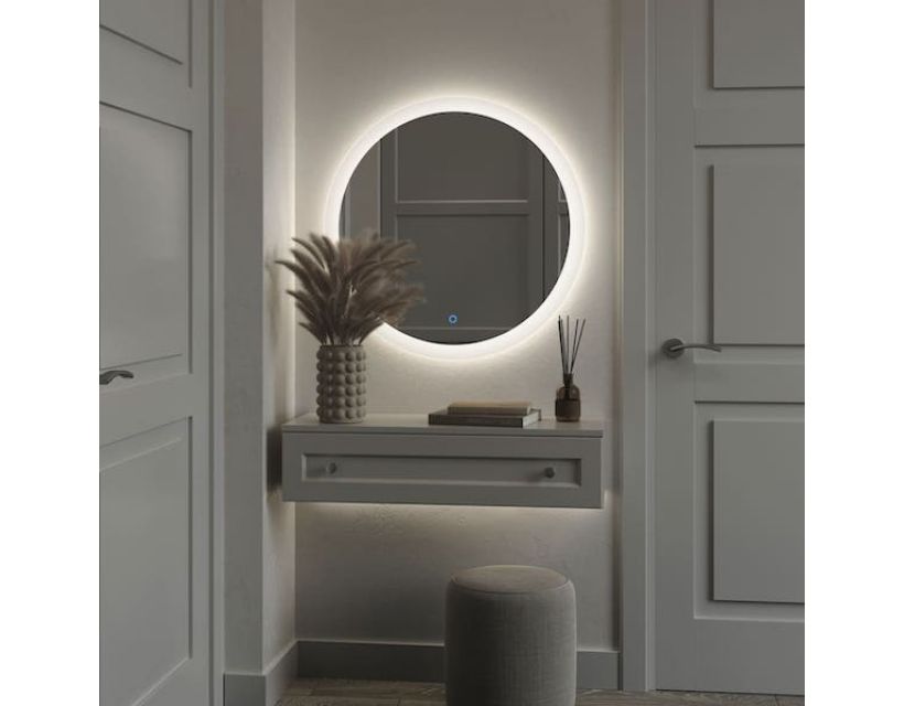 Зеркало оснащено встроенной светодиодной подсветкой, которая обеспечивает мягкое и равномерное освещение. Это делает его идеальным вариантом как для ванной комнаты, так и для гостиной. Светодиоды отличаются экономичностью, долгим сроком службы и безопасностью.