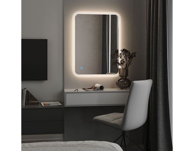 Зеркало оснащено встроенной светодиодной подсветкой, которая обеспечивает мягкое и равномерное освещение. Это делает его идеальным вариантом как для ванной комнаты, так и для гостиной. Светодиоды отличаются экономичностью, долгим сроком службы и безопасностью.