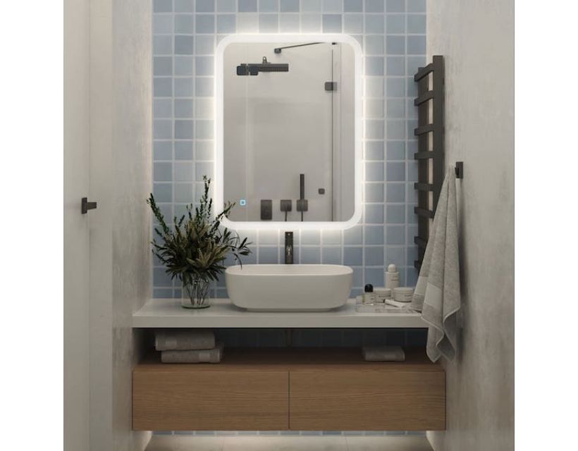 Зеркало оснащено встроенной светодиодной подсветкой, которая обеспечивает мягкое и равномерное освещение. Это делает его идеальным вариантом как для ванной комнаты, так и для гостиной. Светодиоды отличаются экономичностью, долгим сроком службы и безопасностью.