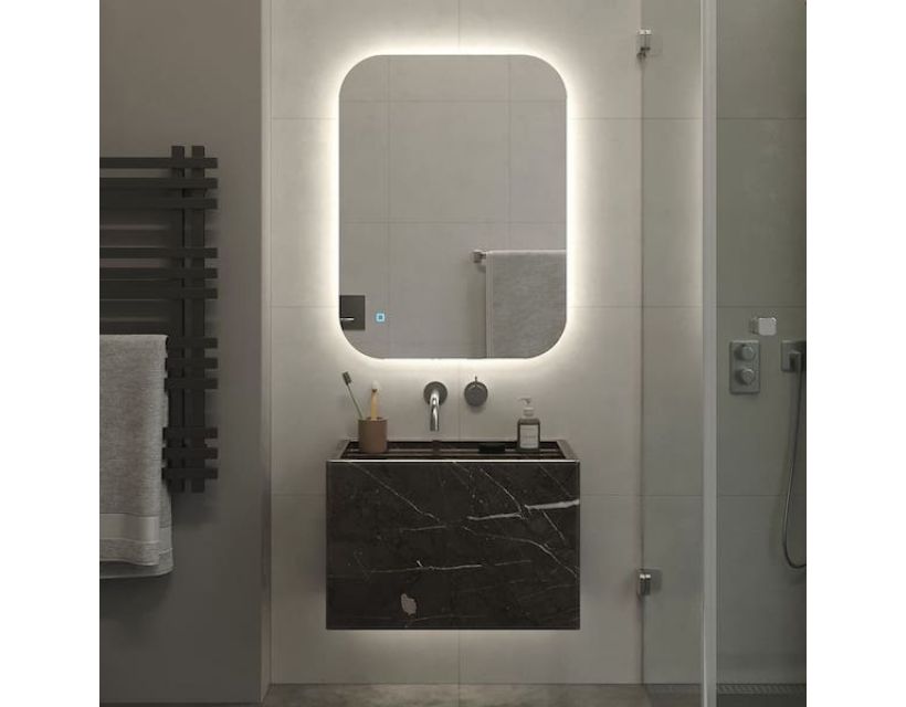 Зеркало оснащено встроенной светодиодной подсветкой, которая обеспечивает мягкое и равномерное освещение. Это делает его идеальным вариантом как для ванной комнаты, так и для гостиной. Светодиоды отличаются экономичностью, долгим сроком службы и безопасностью.