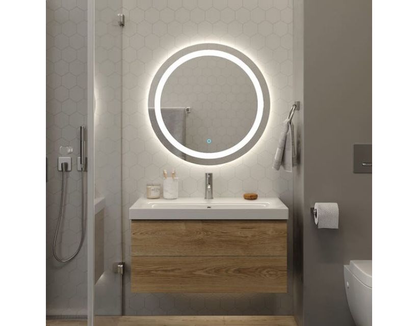 Зеркало оснащено встроенной светодиодной подсветкой, которая обеспечивает мягкое и равномерное освещение. Это делает его идеальным вариантом как для ванной комнаты, так и для гостиной. Светодиоды отличаются экономичностью, долгим сроком службы и безопасностью.